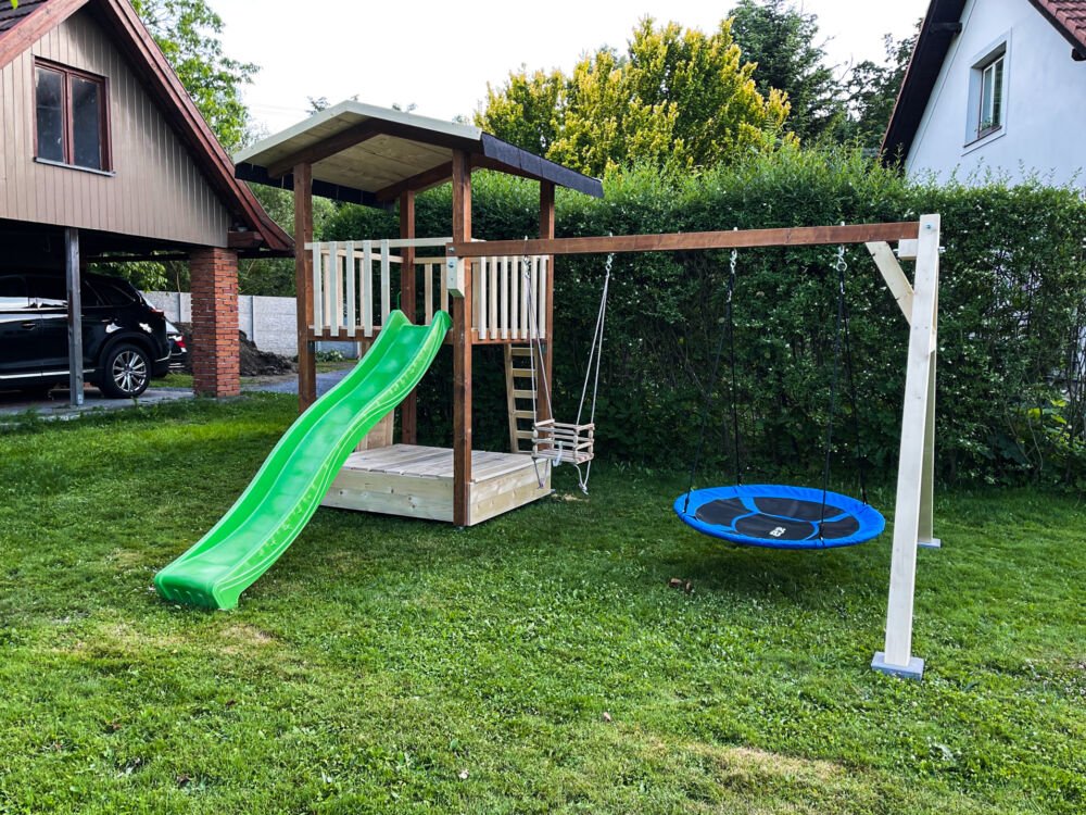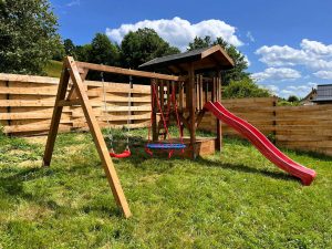 ➤ Houpačky jako třeba houpací hnízdo, prkno, nebo šplhací lano, které zaručí neodkladné využití Vašeho hřiště.