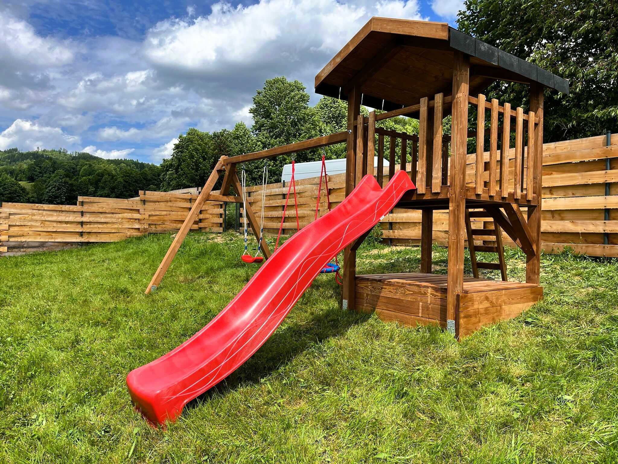 Podporujeme české dodavatele – veškeré dřevo, skluzavky, houpačky a spojovací materiál nakupujeme výhradně v Česku. Hrany masivních trámů ofrézujeme a obrušujeme do hladka, aby byly příjemné na dotek a minimalizovalo se riziko zadření třísky nebo jiného poranění. Vše spojujeme kvalitním materiálem přímo u Vás na zahradě, čímž zajišťujeme maximální bezpečnost a dlouhodobou stabilitu.