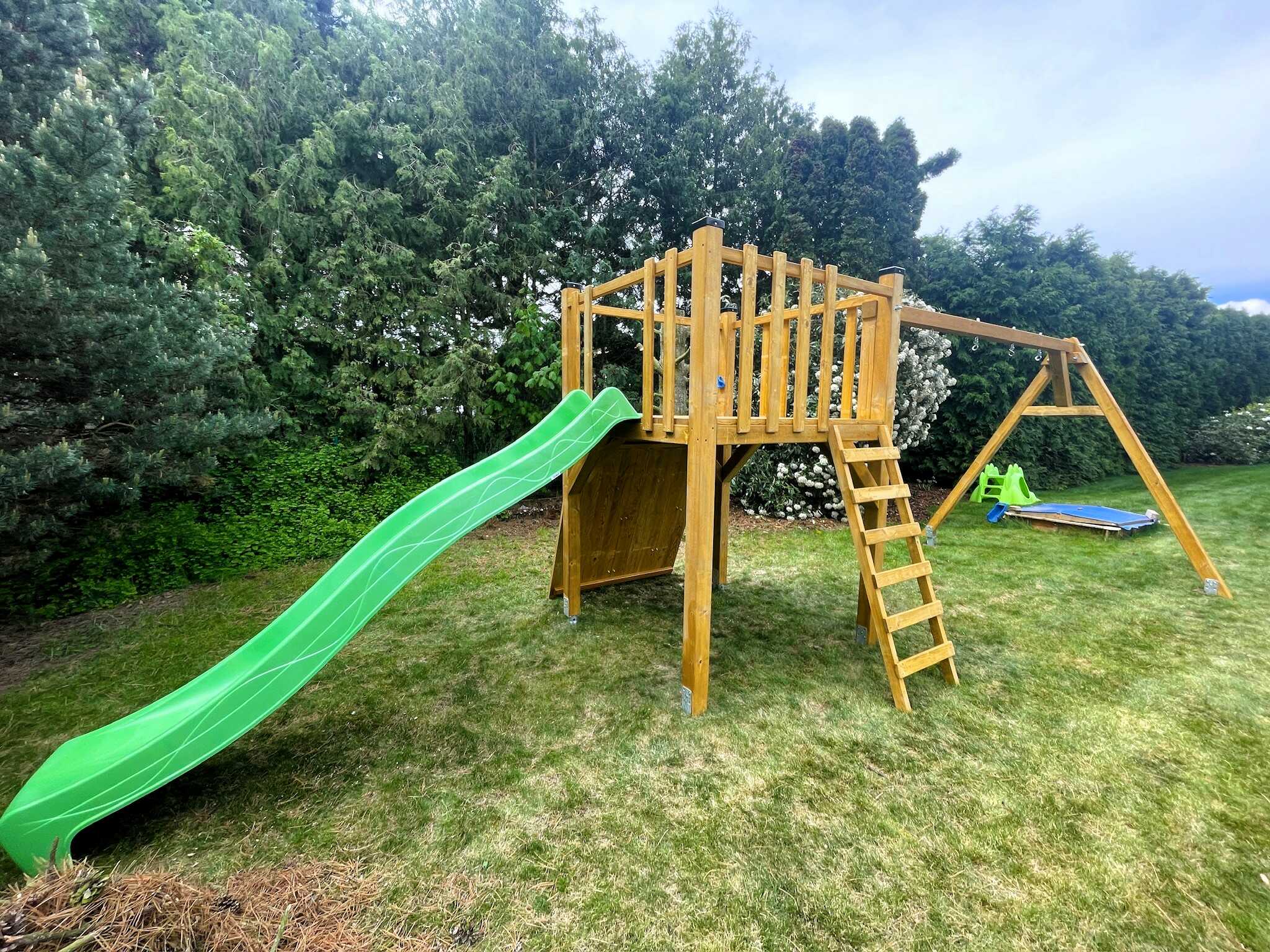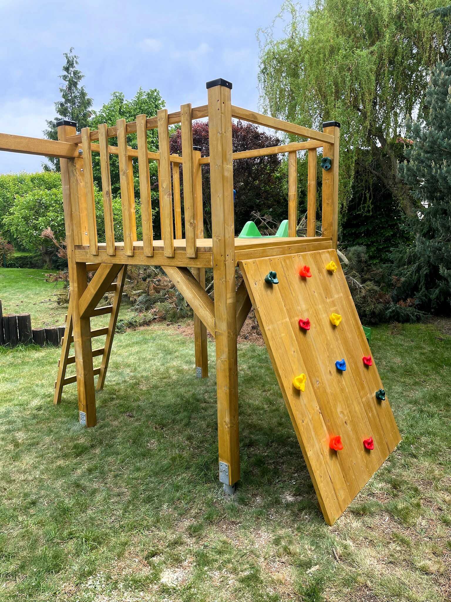 Montáž přímo u Vás na zahradě je v ceně hřiště. Jen díky tomu dokážeme dosáhnout požadované bezpečnosti. U nás se totiž nesetkáte s žádnými polotovary, vždy vše připravujeme na míru podle Vaší zahrady a požadavků. A že máte zahradu ve svahu? To přece nevadí, jen se na tom společně musíme dohodnout před montáží.