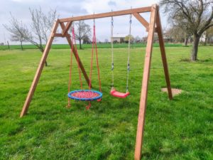 Houpačky jako třeba houpací hnízdo, prkno, nebo šplhací lano, které zaručí neodkladné využití Vašeho hřiště.