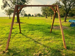 Konstrukce na dvě závěsné houpačky je jedním ze základních prvků, který dokáže děti bezpečně zabavit na dlouhou dobu. Díky masivním trámům a pečlivé přípravě bude konstrukce součástí Vašeho domova dlouhé roky. Součástí konstrukce jsou i houpačkové háky a nátěr v ořechovém odstínu.