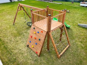 Díky kombinaci houpání a lezení pomáhá rozvíjet koordinaci, rovnováhu i sílu. Robustní provedení je vhodné pro venkovní použití při správné montáži.