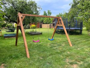 Máte velkou rodinu a potřebujete od našeho hřiště víc? Konstrukce pro tři houpačky